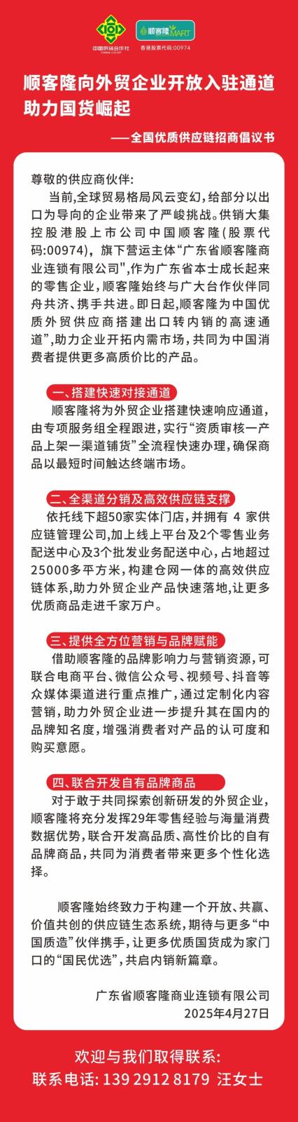 • 順客隆向外貿(mào)企業(yè)開放入駐通道,助力國貨崛起! 2025-04-28